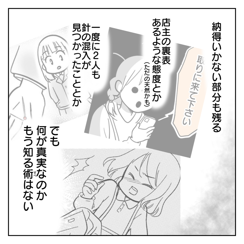 2023年09月14日 制服にマチ針が混入してた話⑯【最終話】 🌟続きはこちら 🌟第1話はこちら ※この漫画は実体験をもとに、登場人物や場所にフィクションを加えて描いています。 最後までお読みくださり、ありがとうございました! 店主、私の顔をまったく覚えていませんでしたね。それどころか「針」と聞いてもなかなかピンときてなかったです。まだ1週間ぞ?新1年生のみなさん、どうか制服を着られる前に今一度ご確認を…! 「制服に針が混入してた話」これにて完結です☆ 🌈他の連載もぜひどうぞ!🌈\実話だからすごい‼😂景品はまさかの…⁉🎁/ \どこまでも追いかけてきたのは…👐子供を守れ!/